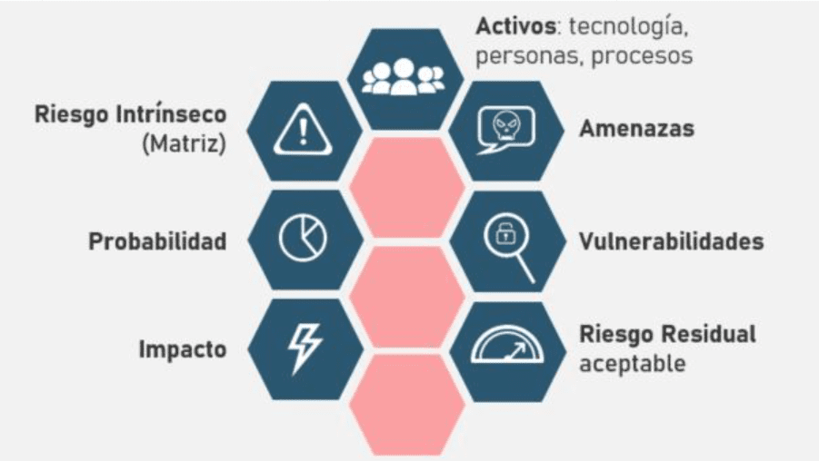 This process also seeks to identify and understand potential threats that could affect an organization. This includes internal and external threats such as cyberattacks, malware, phishing, social engineering, natural disasters, among others. It is important to keep in mind that threats can evolve over time, so it is necessary to stay up to date on the latest trends and techniques used by attackers.